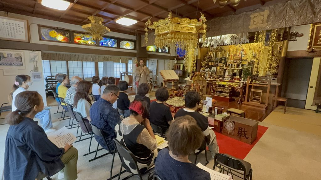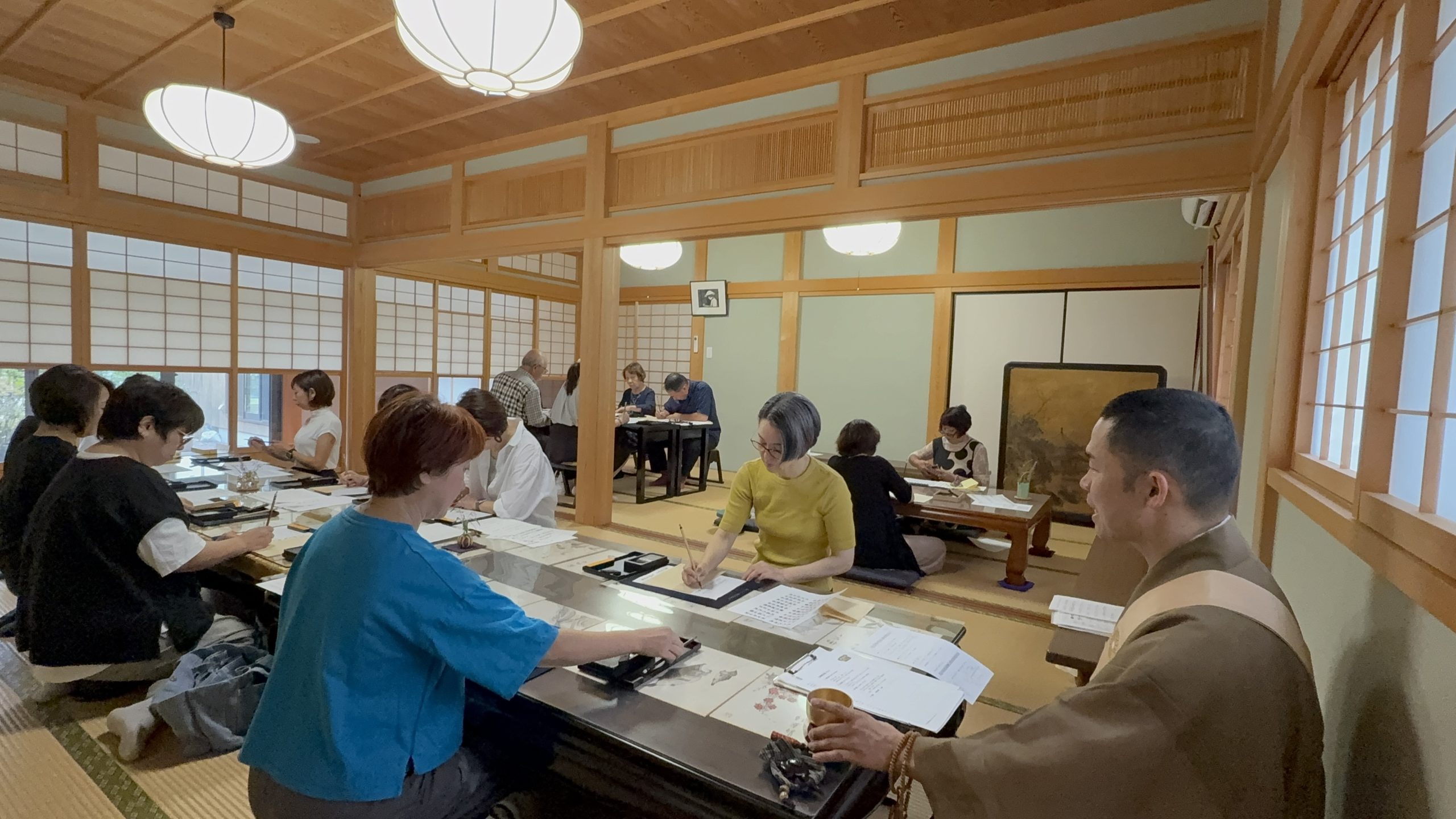 住職の法話を聴きながら写経します🖌。終了後は、お茶とお菓子でティータイム🍵(お寺に聞いてみたい事など気軽にお話ししましょう😊)