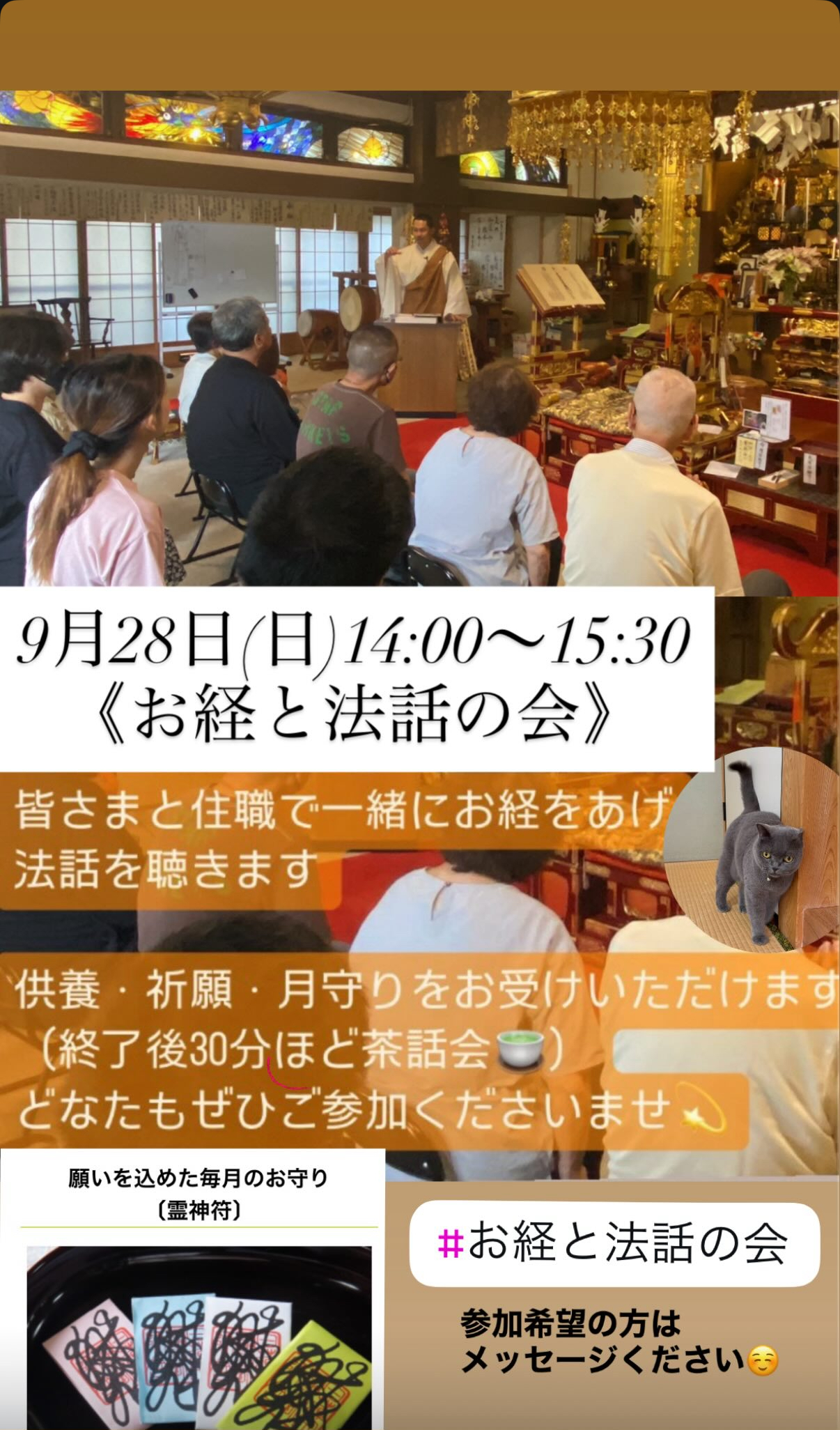 9月28日(日)【お経と法話の会:妙見参】を開催